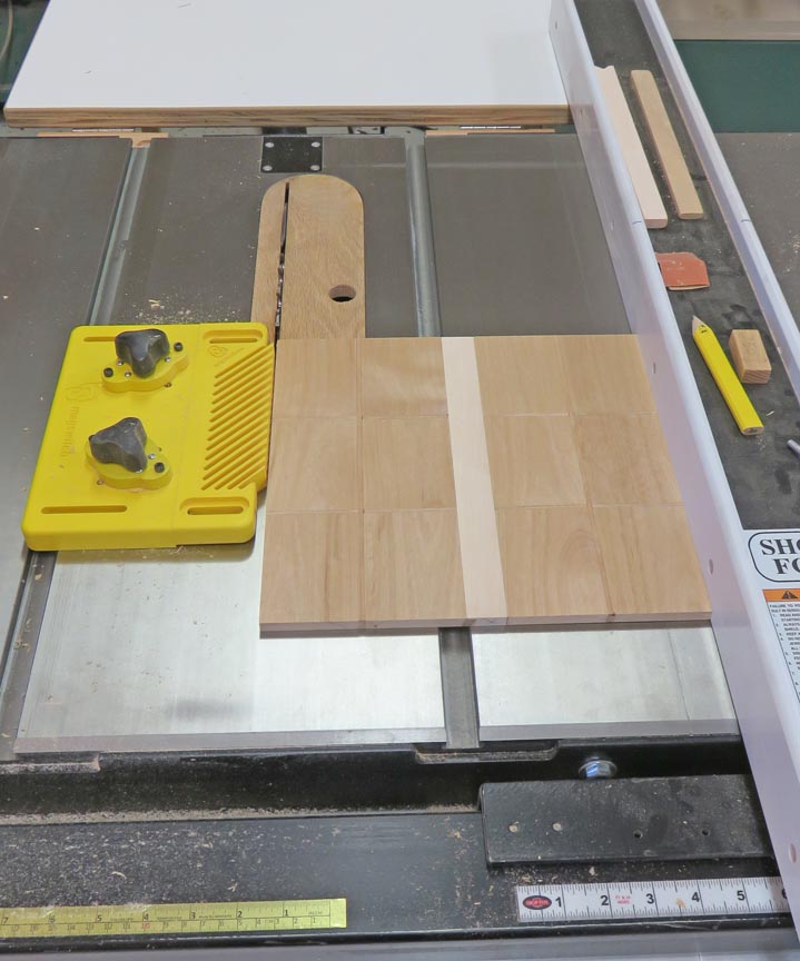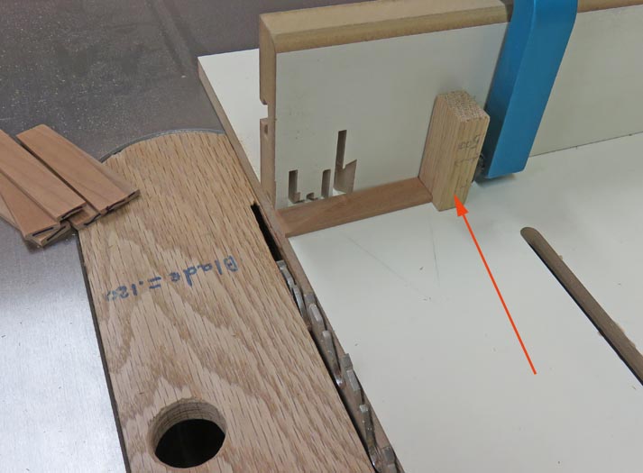 The work stop on my cross-cut sled sits too high for my thin work pieces. So I used a block against the work stop and then my work piece against the block. This worked out just fine.