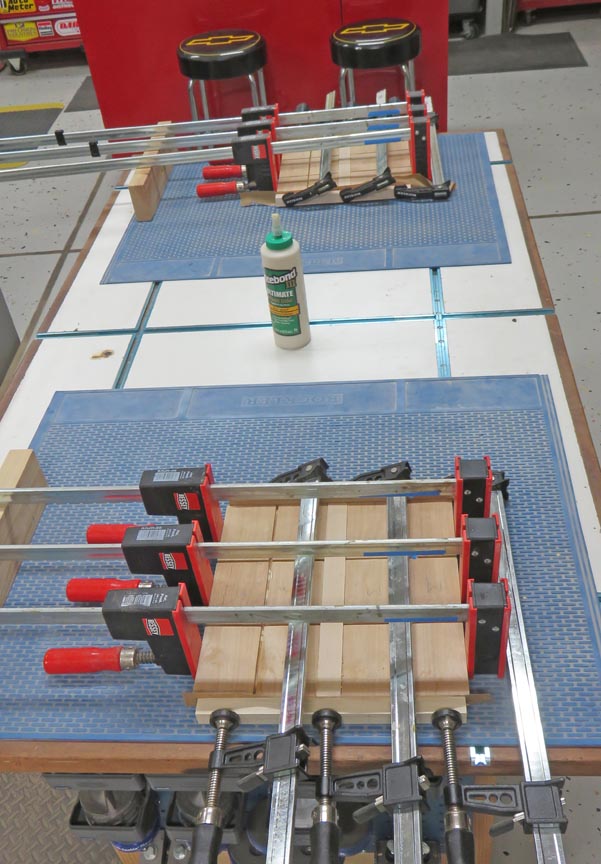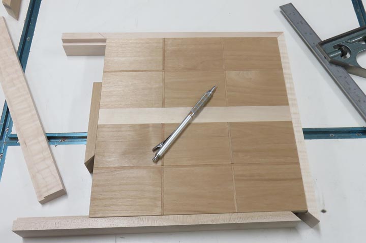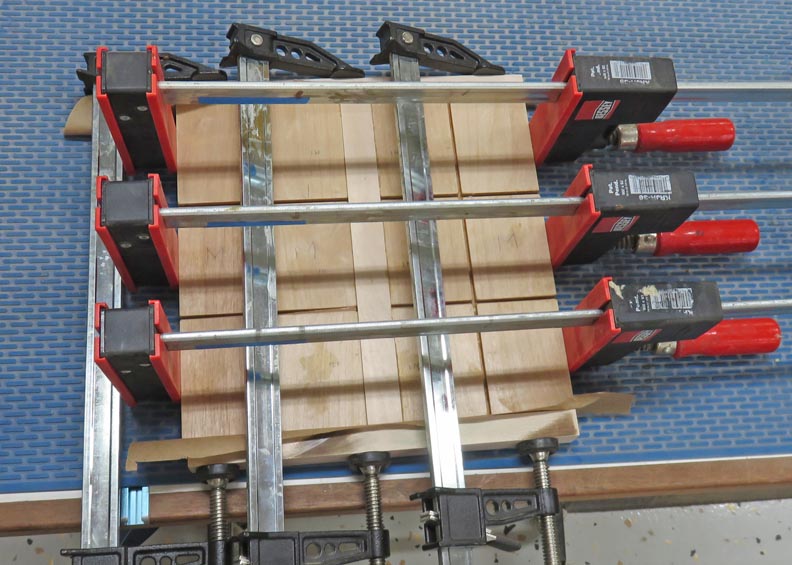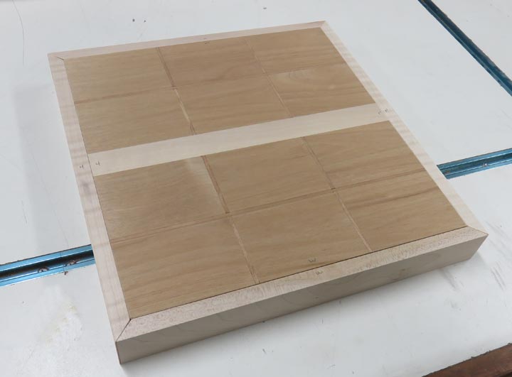 This glue-up wasn't easy because of all the pieces (23 pieces total). However, I made the outer pieces slightly oversize so I could trim the edges later just in case I had something move.