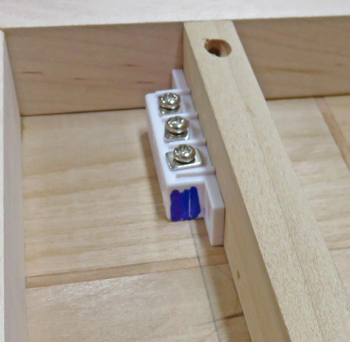 Next I drilled a 3/8" hole in each piece to run wires through.