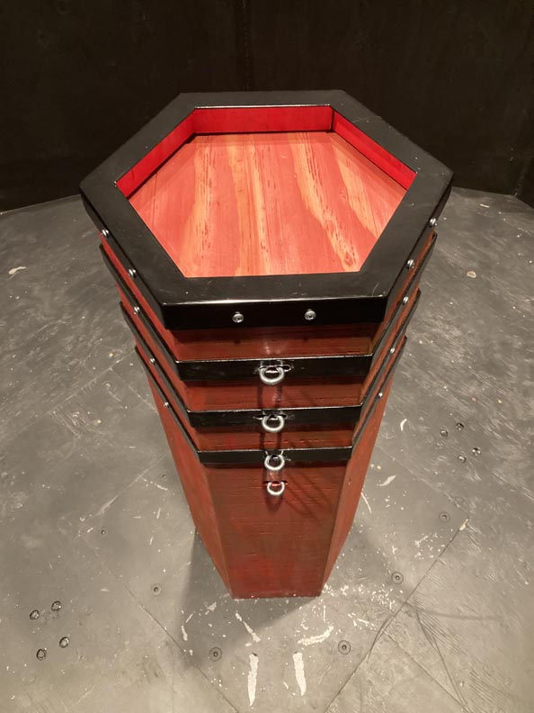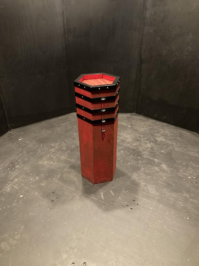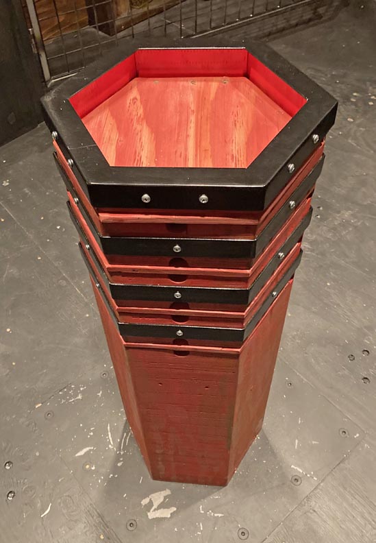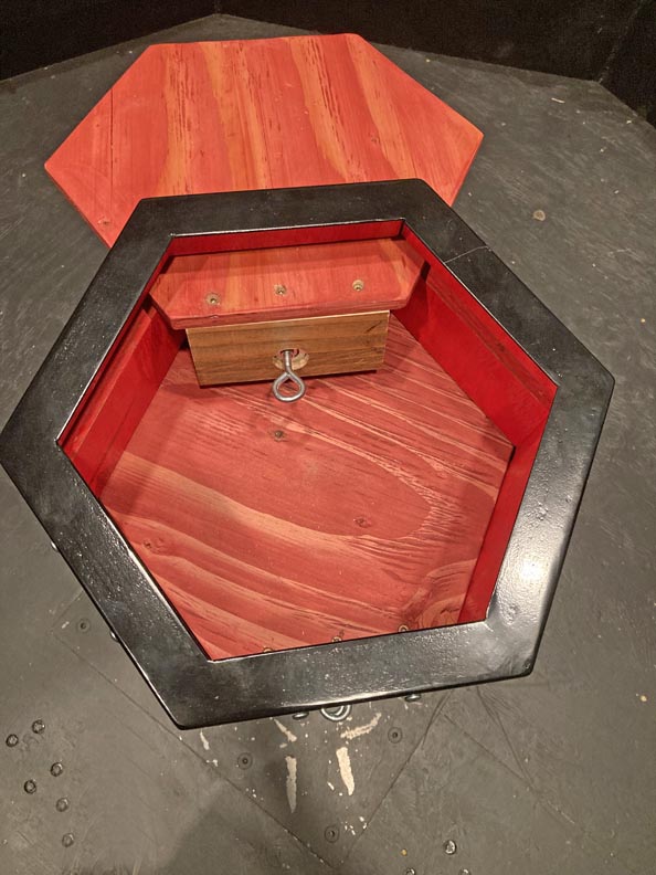 The wooden hex pieces slide like drawers revealing some